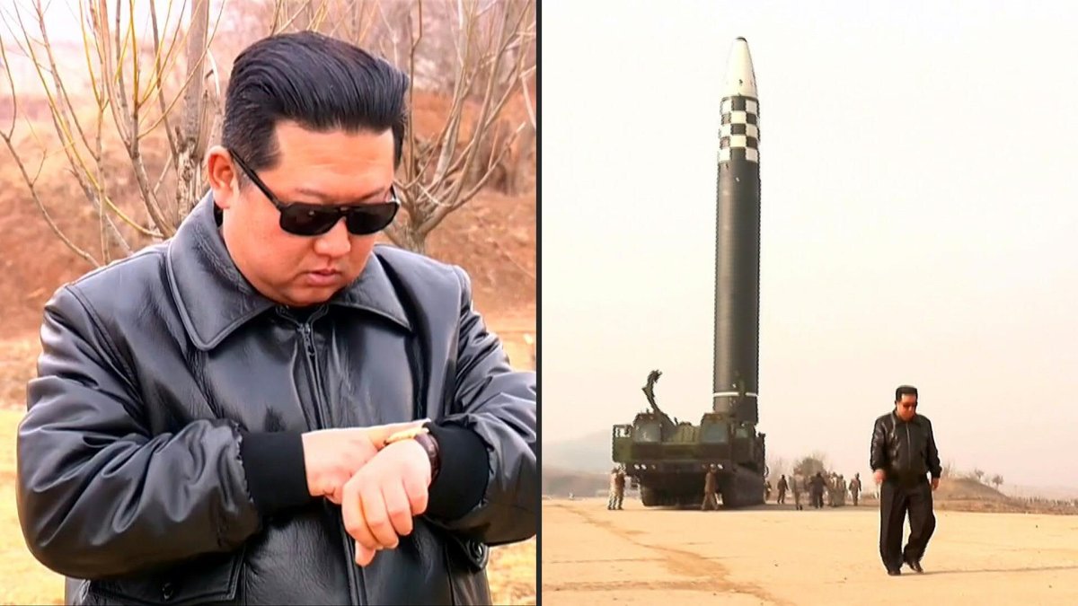 В същото време, държавната телевизия на КНДР разпространи драматично видео, в което лидерът наблюдава пуска и дори отмерва времето.