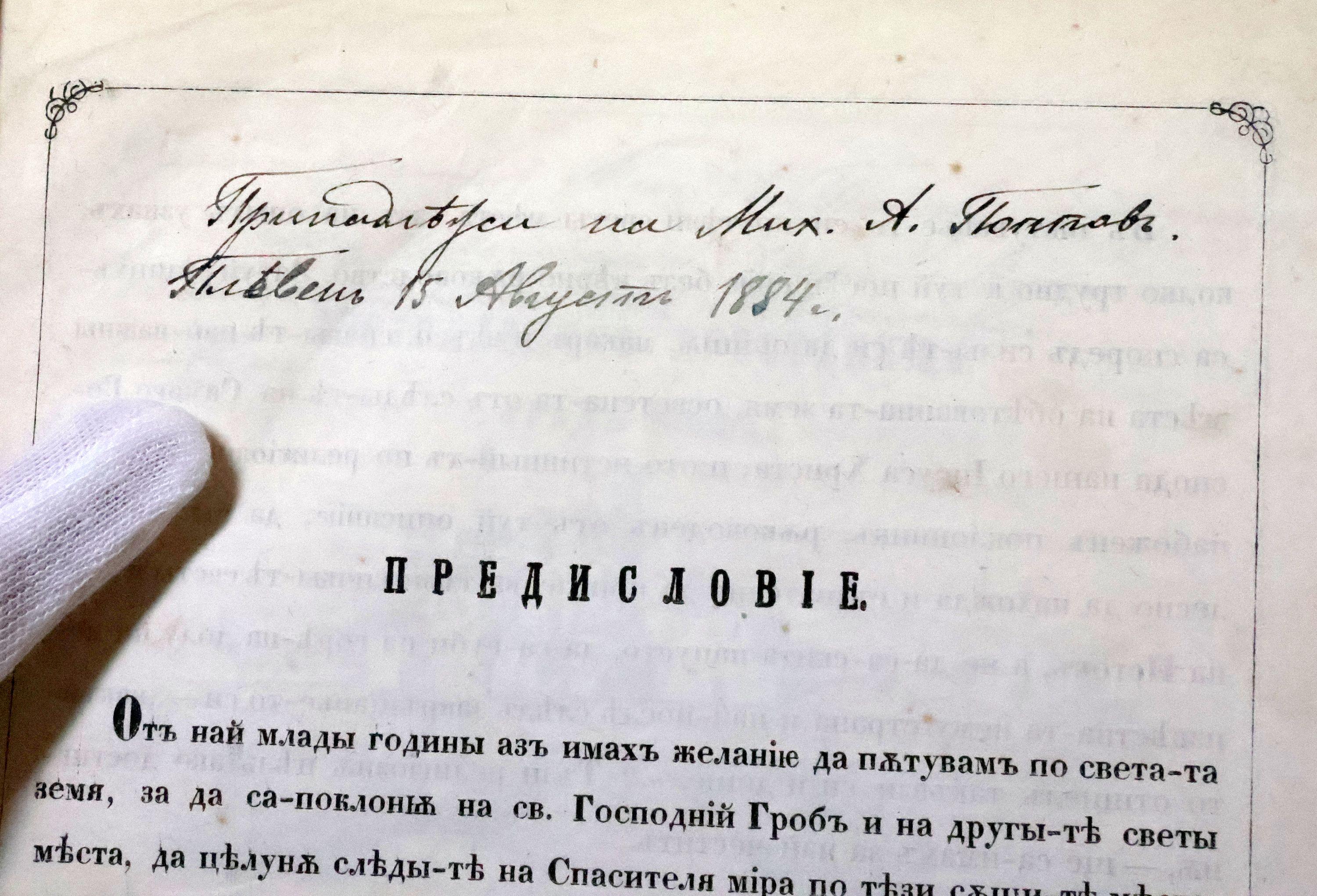 Книгата е подарена през 1871 г., когато Левски е живял в дома на Михаил Попов.