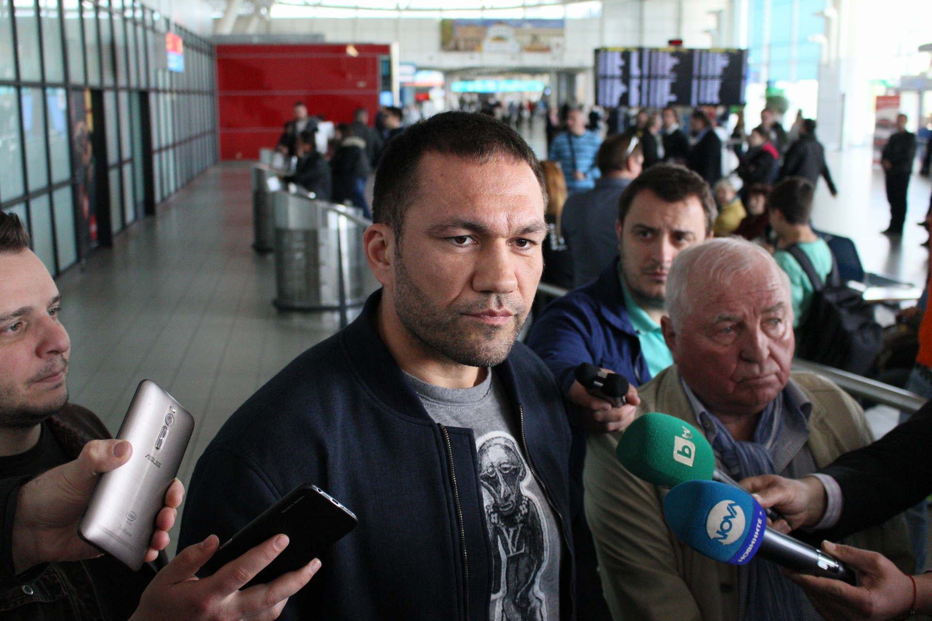 Кубрат Пулев се прибра в България след победата в седми рунд над румънеца Богдан Дину с нокаут, а на летище София той отново коментира и разразилия се скандал около целувката, която родният боец даде на журналистката Джени Суши.