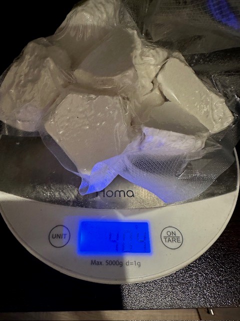 При извършеното претърсване криминалистите намерили и иззели голямо количество дрога - 120 грама кокаин, 500 грама екстази, 400 грама тревиста маса, 500 грама амфетамин, 50 грама кристали, както и електронни везни, машина за вакуумиране и множество празни пликчета с различни размери и етикети за тях, съобщават от МВР.