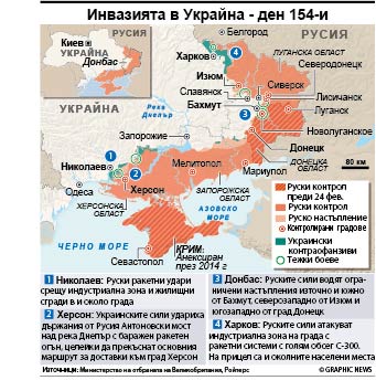 “Ние чукаме на вратите на нашите западни колеги поне от 2013 г., като им казвахме, че е абсолютна червена линия, когато създават русофобска държава на нашите граници”, добави Лавров.