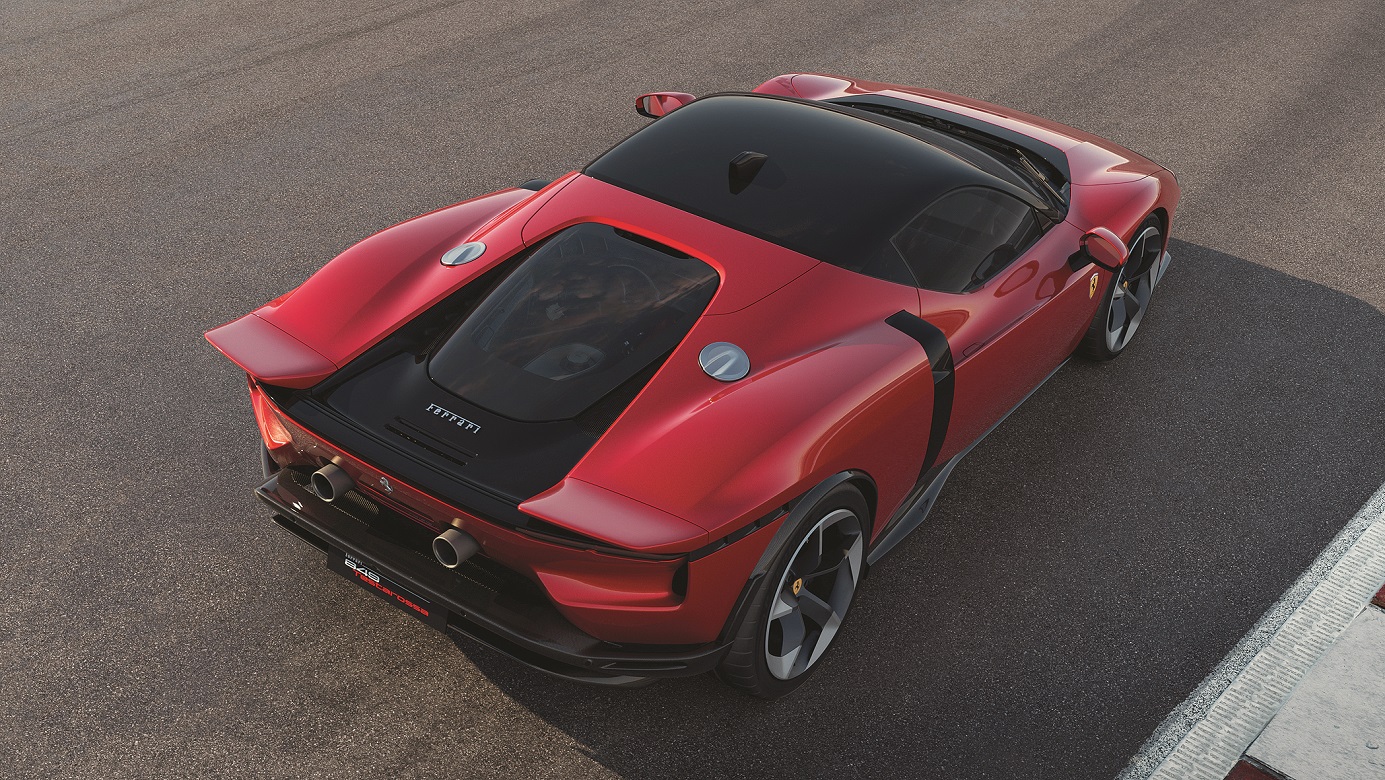 Активен спойлер превключва от минимално към максимално положение за по-малко от секунда и заедно с останалата аеродинамика генерира 415 кг притискателна сила при 250 км/ч (с 25 кг повече от SF90). На борда е и системата FIVE (Ferrari Integrated Vehicle Estimator). Тя създава “цифров близнак” на автомобила, който точно възпроизвежда управлението му в реално време, позволявайки оптимален контрол.