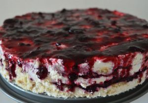 В красив дълбок продълговат съд се слага първият ред от обикновени бисквити. Заливат се с топлия крем. Отгоре се слага сладкото от вишни като внимателно се разпределя навсякъде. След това се поставят шоколадовите бисквити и се заливат с крема. Поради факта, че кремът е горещ, шоколадът се разтапя, което дава допълнителен шоколадов слой на тортата. Операцията се извършва до приключване на крема. Отгоре може да се украси тук-там със сладкото от вишни. При желание всяка обикновена бисквита би могла да се потопи в кафе и така би се получила една разновидност на бисквитената торта.