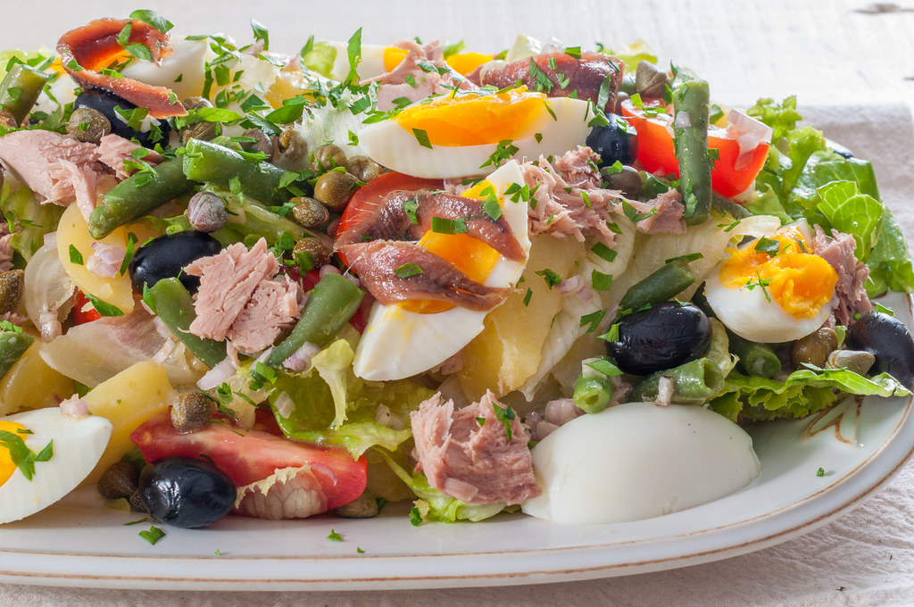 Има салати, за които много народи претендират, че са техни – „Руска“, „Оливие“, картофена, но „Нисоаз“ не може да бъде друга, освен френска. Тя произхожда от района на Ница и има различни варианти. Общото е, че се използват листа от кръгла салата, риба (най-често тон, но може и друга), аншоа, варени яйца, лук шалот, маслини, домати. Някои слагат още варени картофи, зелен фасул, чушка. Салатата се реди, не се разбърква. Най-отдолу са листата от салата, останалите продукти се слагат или на купчинки едни до други, или на пластове едни върху други, като рибата е в средата. Дресингът е задължителен, а той не е истински „Нисоаз“, ако в него няма дижонска горчица, зехтин и пресен лимонов сок.