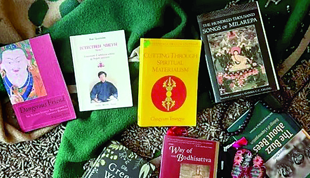 Книгите, намерени в стаята в хижа “Петрохан”, където се медитирали членовете на сектата.