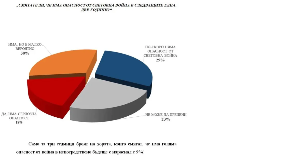 Заедно с това нарастват и опасенията от война в непосредствено бъдеще. Само за три седмици броят на хората смятащи, че има голяма опасност от война в близко бъдеще се е увеличил с 9%.