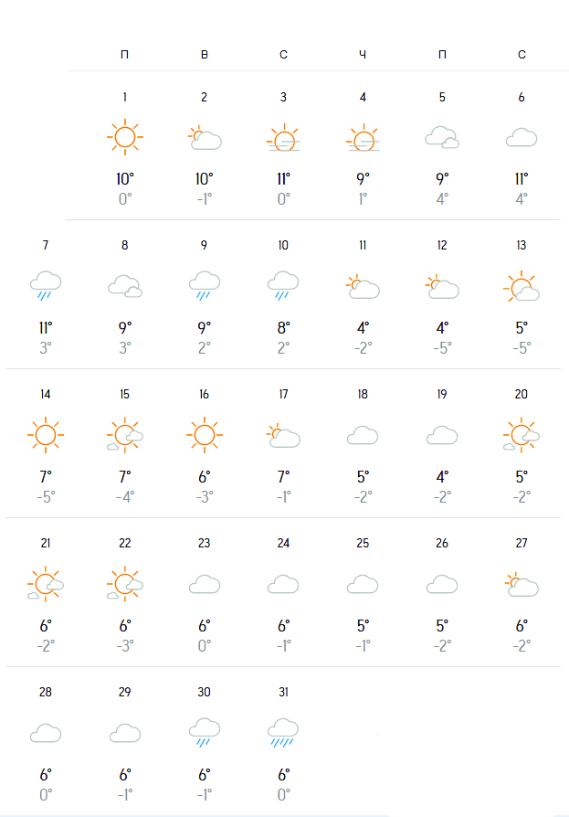 През първата и втората десетдневка средните максимални температури ще бъдат между 6 и 10 градуса, а през третата десетневка на месеца: ще бъдат от 5 до 9.