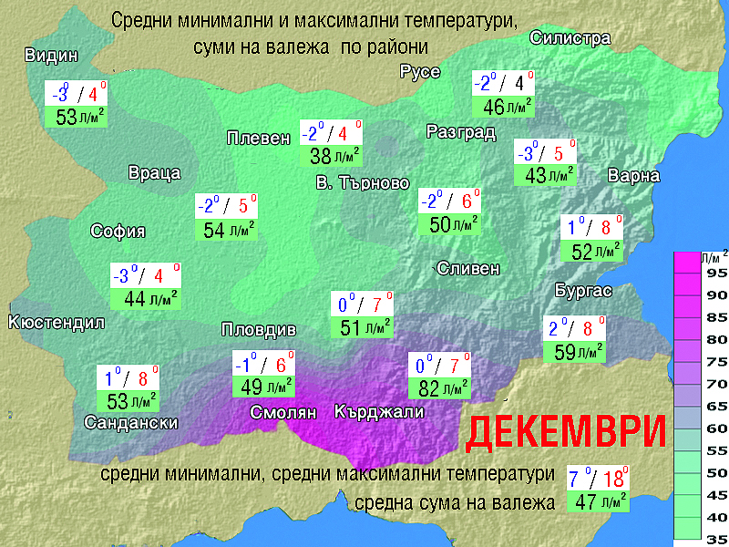 Декември ще бъде с температури по–високи от средните климатични норми за месеца - средни максимални от 6 до 10 градуса .