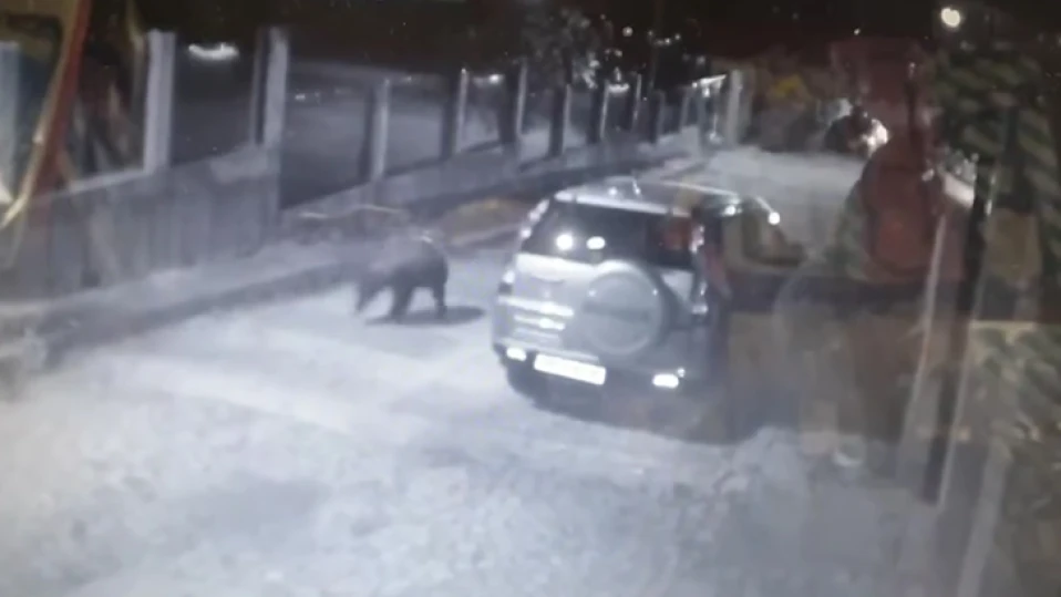 Кадри от охранителни камери показват как мечка се разхожда спокойно край къщите в северната част на Карлово около 20:00 часа вечерта. В един момент побягнала заради приближаващ автомобил. Хората са уплашени, а някои от тях стават свидетели на неочакваната ѝ поява съвсем отблизо.