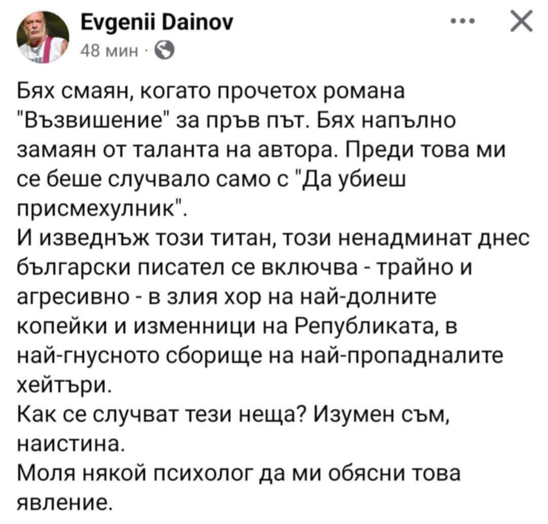 Евгений Дайнов също не пропусна да коментира казуса в своя фейсбук профил.