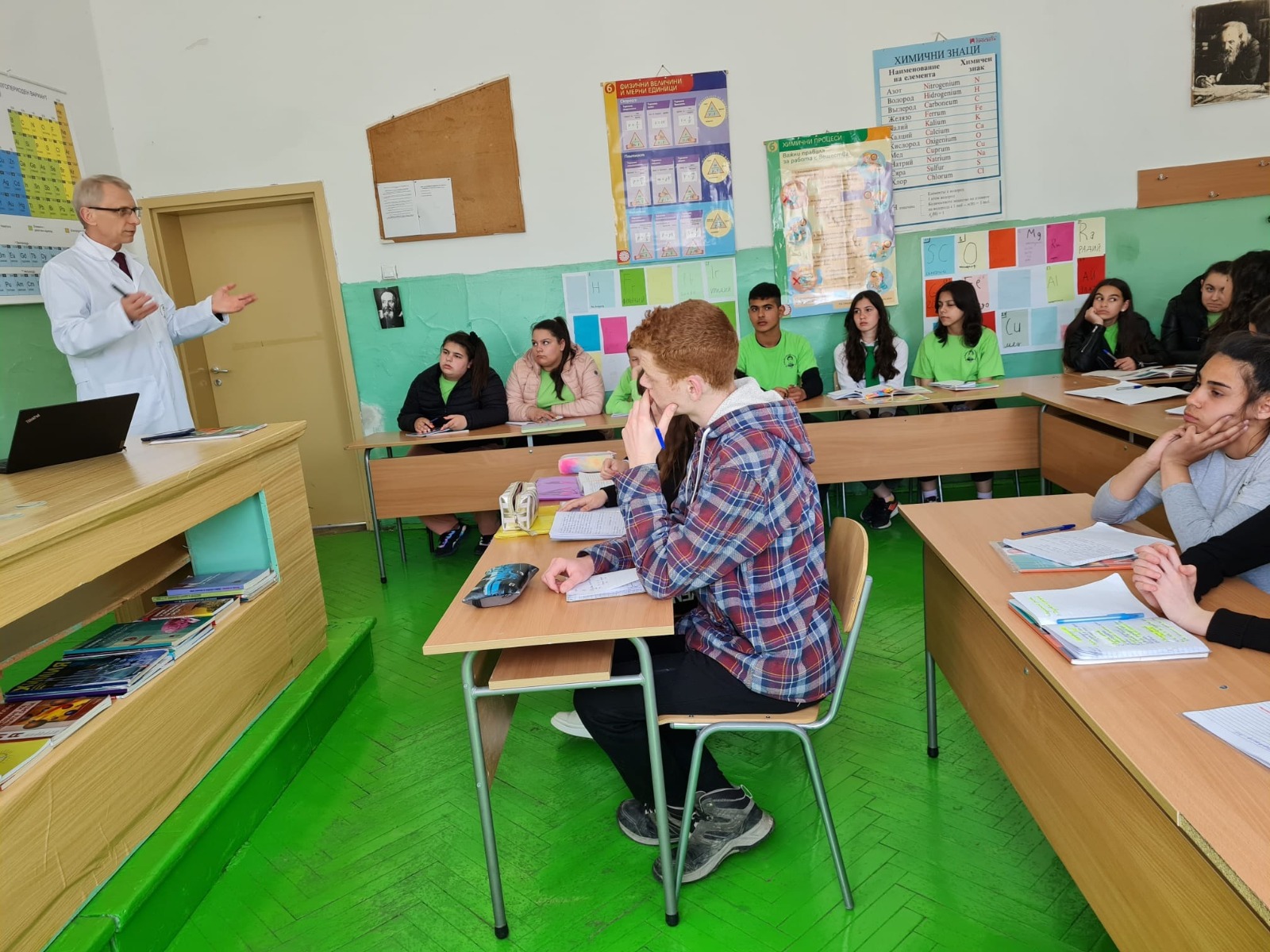 Министърът на образованието и науката акад. Николай Денков влезе днес в ролята на учител със седмокласниците от СУ „Панайот Волов“ в град Каспичан. Какви са физичните и химичните свойства на солната киселина? Как тя си взаимодейства с метали, с медния оксид и натриевата основа? Каква е нейната задача в стомаха и защо не го разяжда? Тези и други въпроси изясни урокът му за солната киселина.