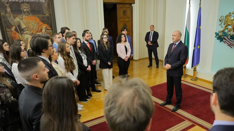 Дълги години се твърдеше, че младите хора у нас не се интересуват от политика и ситуацията в България, но това не е така, защото именно младите притежават чувство за достойнство и дълг, което те заявиха смело и открито. С тези думи президентът Румен Радев посрещна в Гербовата зала на „Дондуков“ 2 участниците в стажантската програма на администрацията на президента през 2025 г., съобщиха от прессекретариата на държавния глава. През тази година 55 младежи бяха част от програмата, което е с осем повече спрямо 2024 г. От 2017 година насам повече от 265 стажанти са имали шанс да придобият умения и знания в различни звена на администрацията на президента.