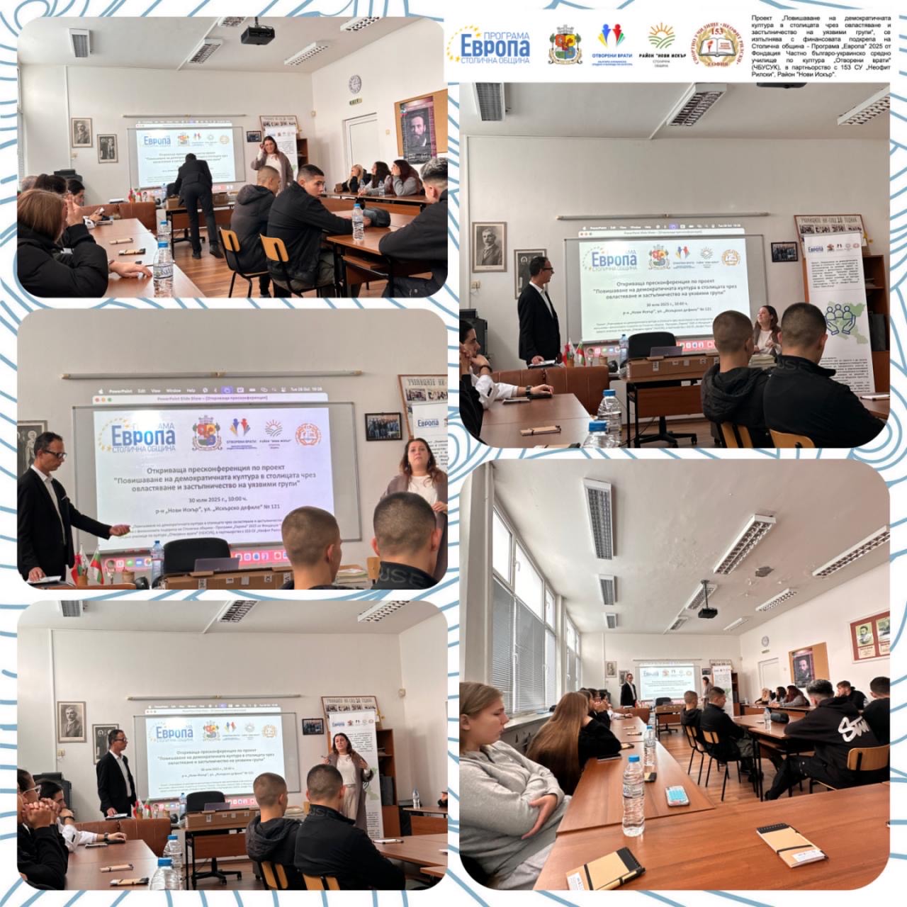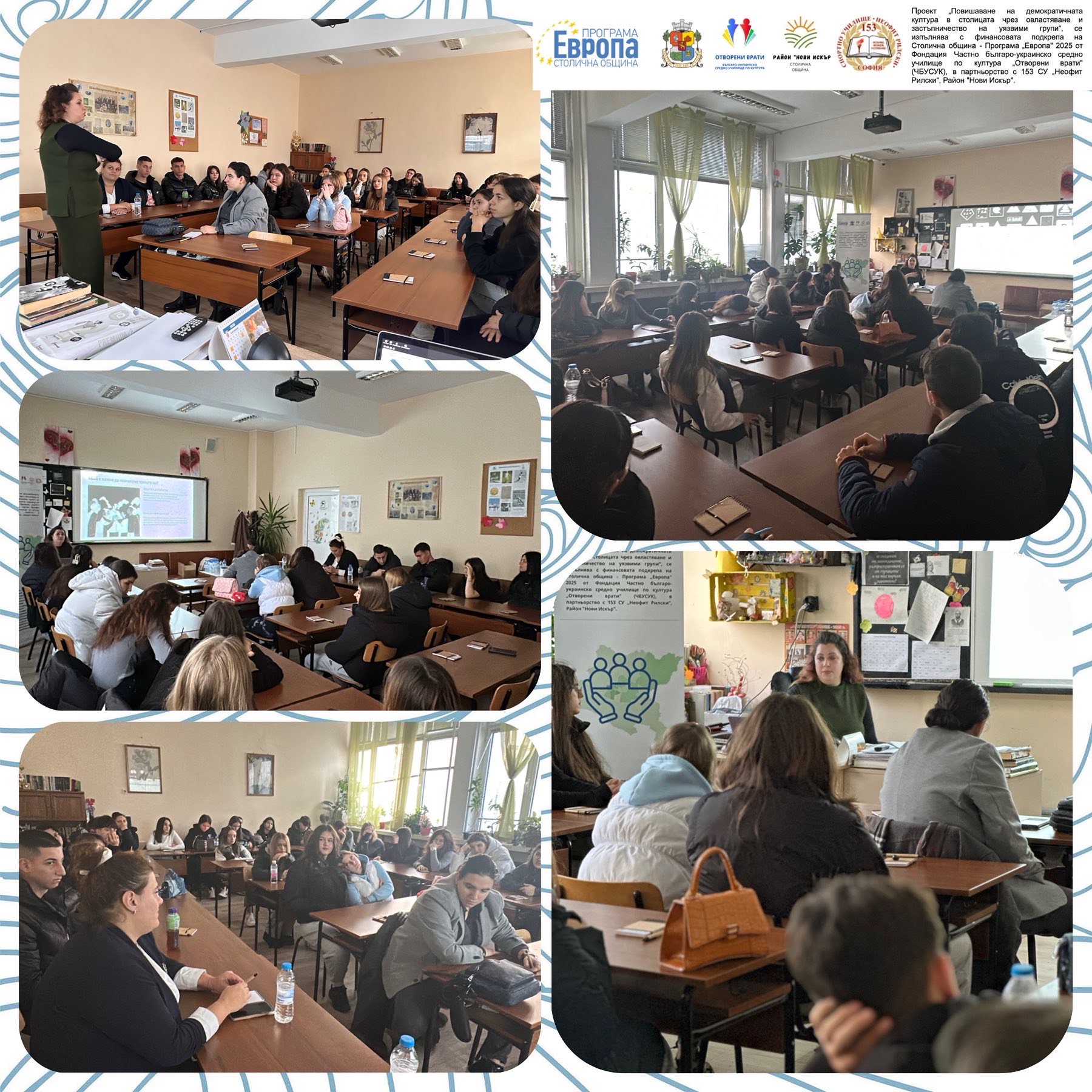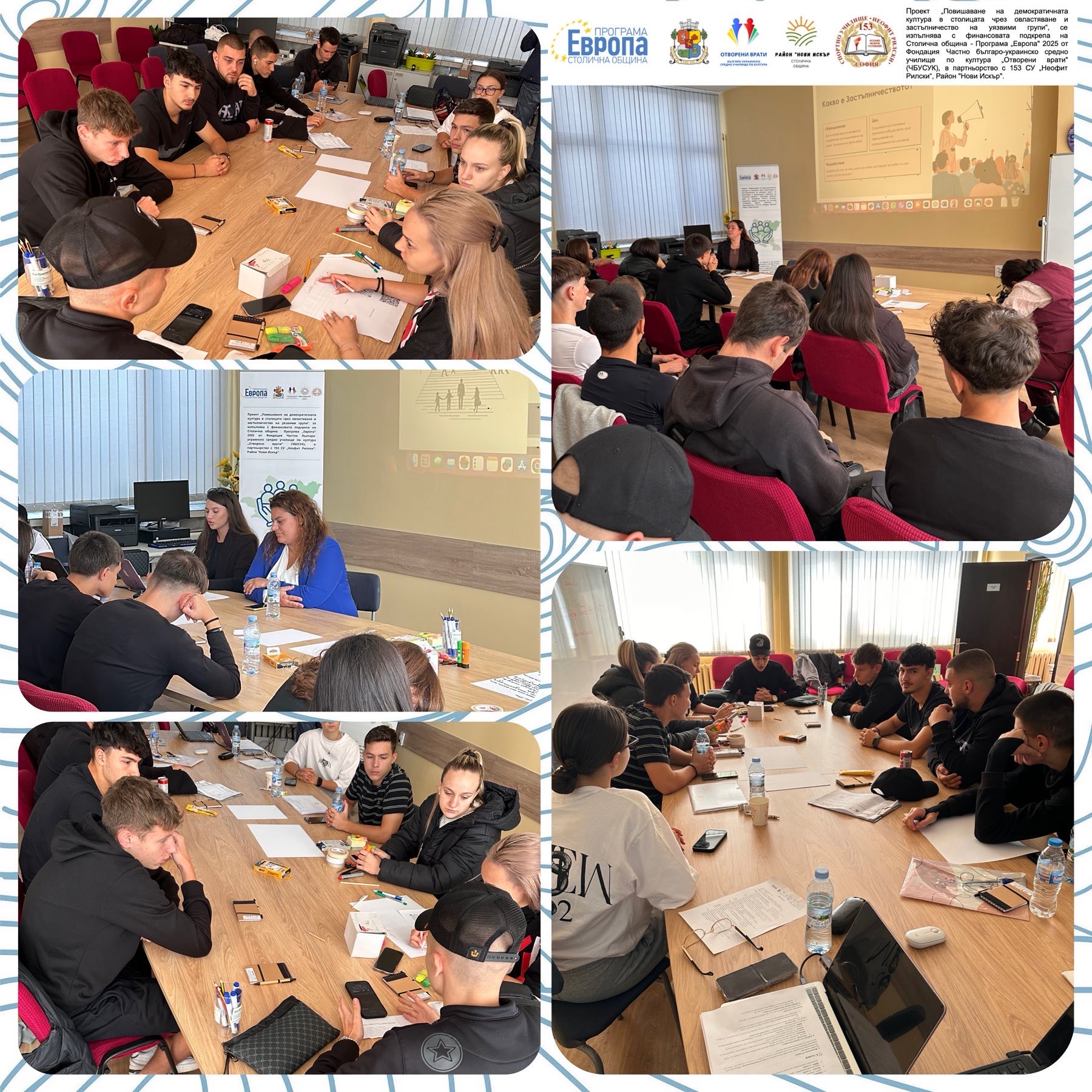 Фондация „Отворени врати“, в партньорство с 153 Спортно училище „Неофит Рилски“ и Район „Нови Искър“, с финансовата подкрепа на Столична община – Програма „Европа“ 2025, приключва своя обучителен цикъл, насочен към насърчаване на демократична култура и активно гражданско участие сред младите хора в София и крайградските райони.