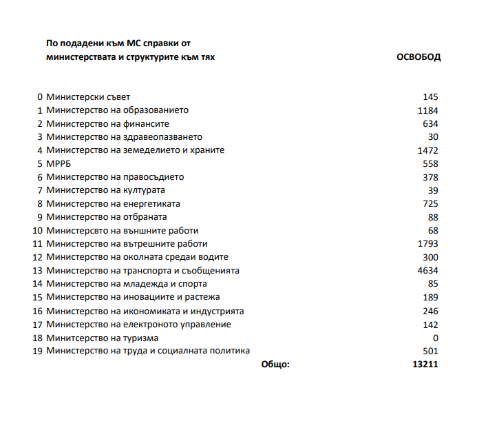 Оттам изпратиха подробна таблица с информация за отделните министерства.