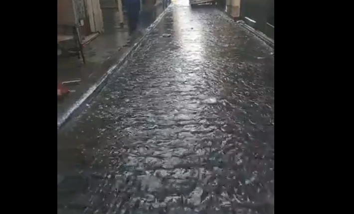 В социалните мрежи се виждат кадри наводнените улици на града. Има съобщения и за повредени сгради.