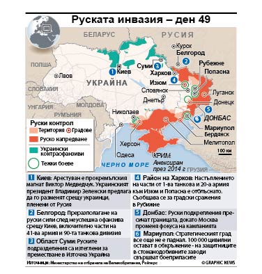 Украинската армия съобщи, че въздушните руски бомбардировки в Мариупол продължават и са насочени най-вече срещу пристанището и комплекса “Азовстал”. Този лабиринт, превърнал се в бастион на украинските сили, които се окопават на километри в него, ще стане арена на ожесточена битка за пълния контрол над града, коментира АФП.