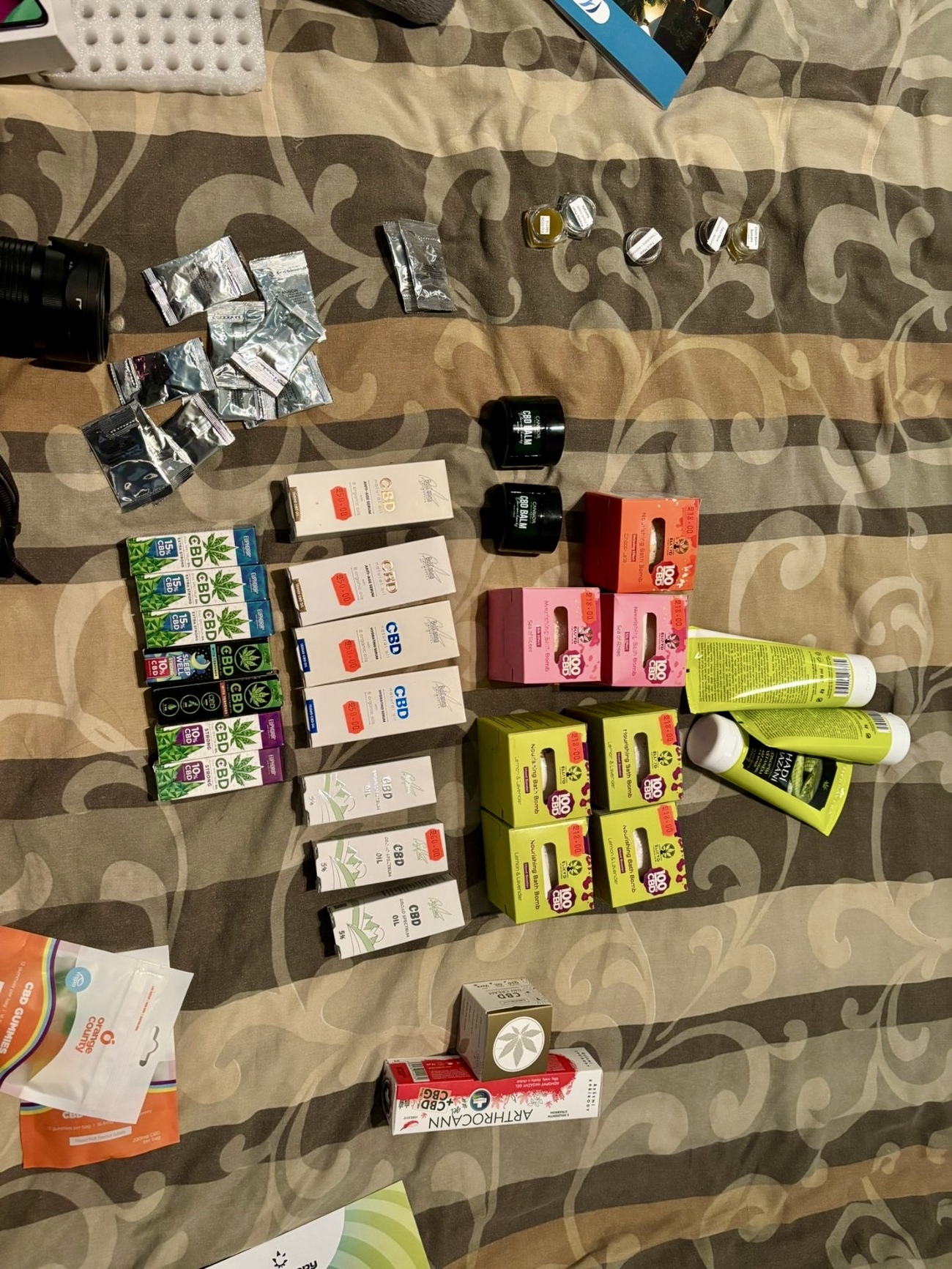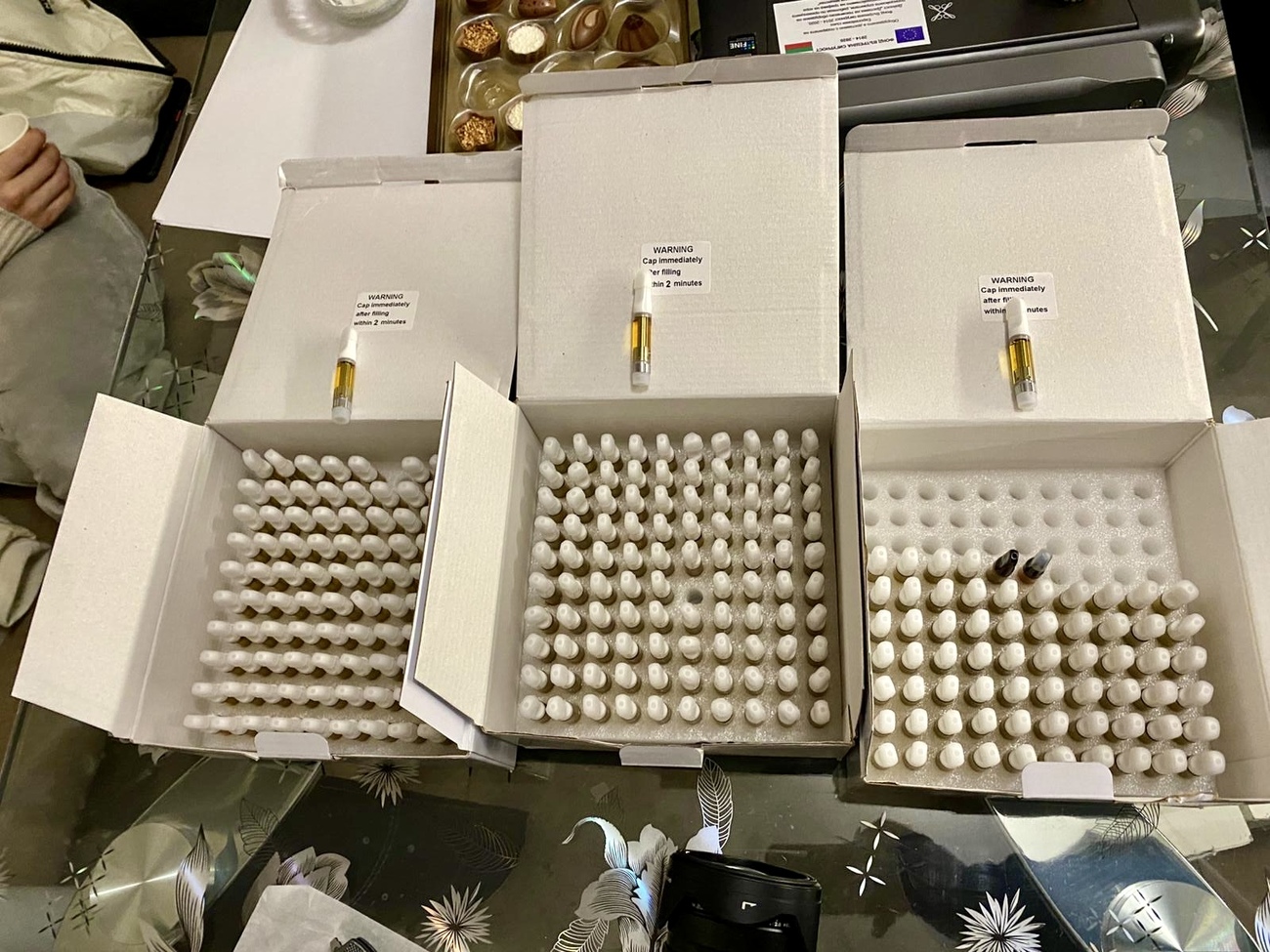 Установени са още 130 грама марихуана, 16 пакетчета чай, съдържащ CBD, козметика и соли за вана с канабиноиди, множество празни пълнители за електронни цигари и капсули, както и консумативи за приготвянето им - чаши, спринцовки, аромати, терпен, електронна везна, както и товарителници за пратки и документи, които имат отношение към воденото производство.