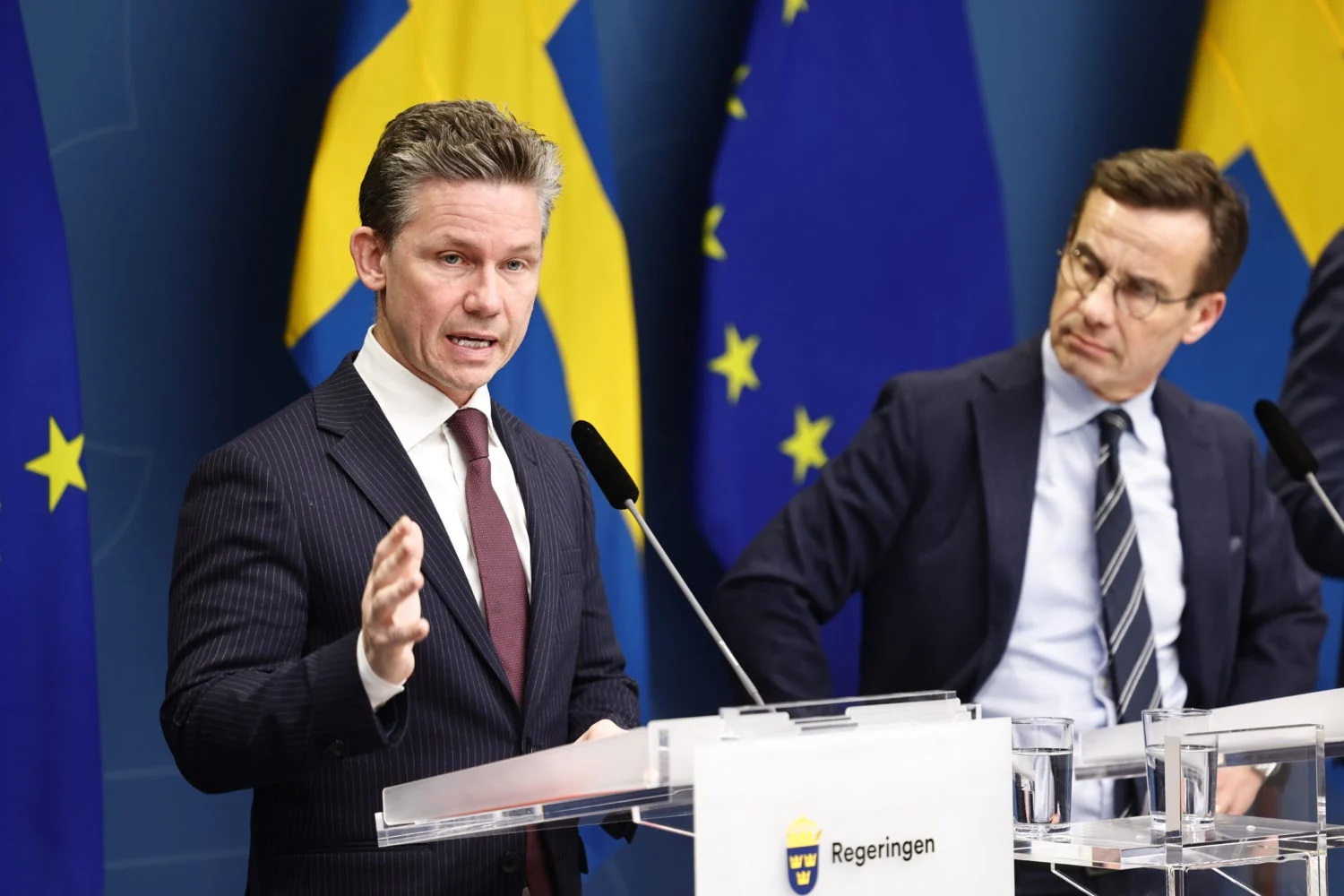 Министър-председателят Улф Кристерсон (вдясно) и министърът на отбраната Пол Йонсон обявиха, че Стокхолм увеличава помощта до 3 млрд. крони.