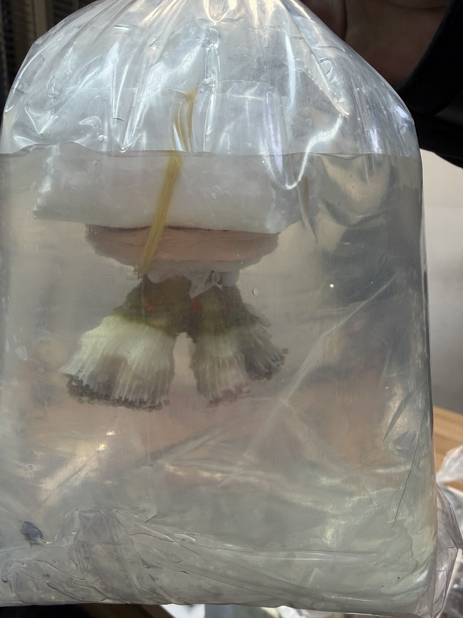 В хода на контролните действия в багажното отделение митническите служители откриват, скрита сред пътническите чанти, бяла кутия от стиропор. След отварянето на кутията в нея са установени 5 прозрачни полиетиленови плика, пълни с вода. Във всеки един от пликовете „плувал“ по един корал. Вторият шофьор заявил, че коралите са негови, но не е представил никакви документи за тях.