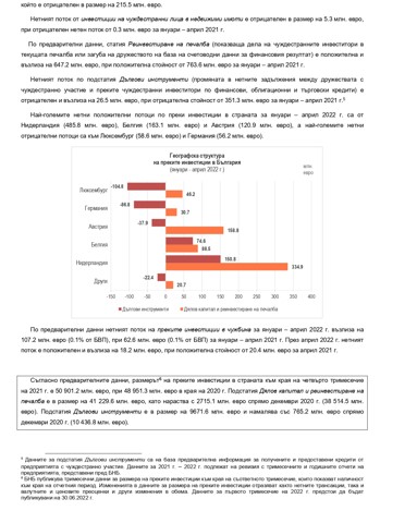 "Към края на март преките инвестиции са 883 млн. евро, а през април намаляват до 653 млн. евро, което показва отлив за последните месеци, откакто това правителство е на власт", отбелязаха финансови анализатори.