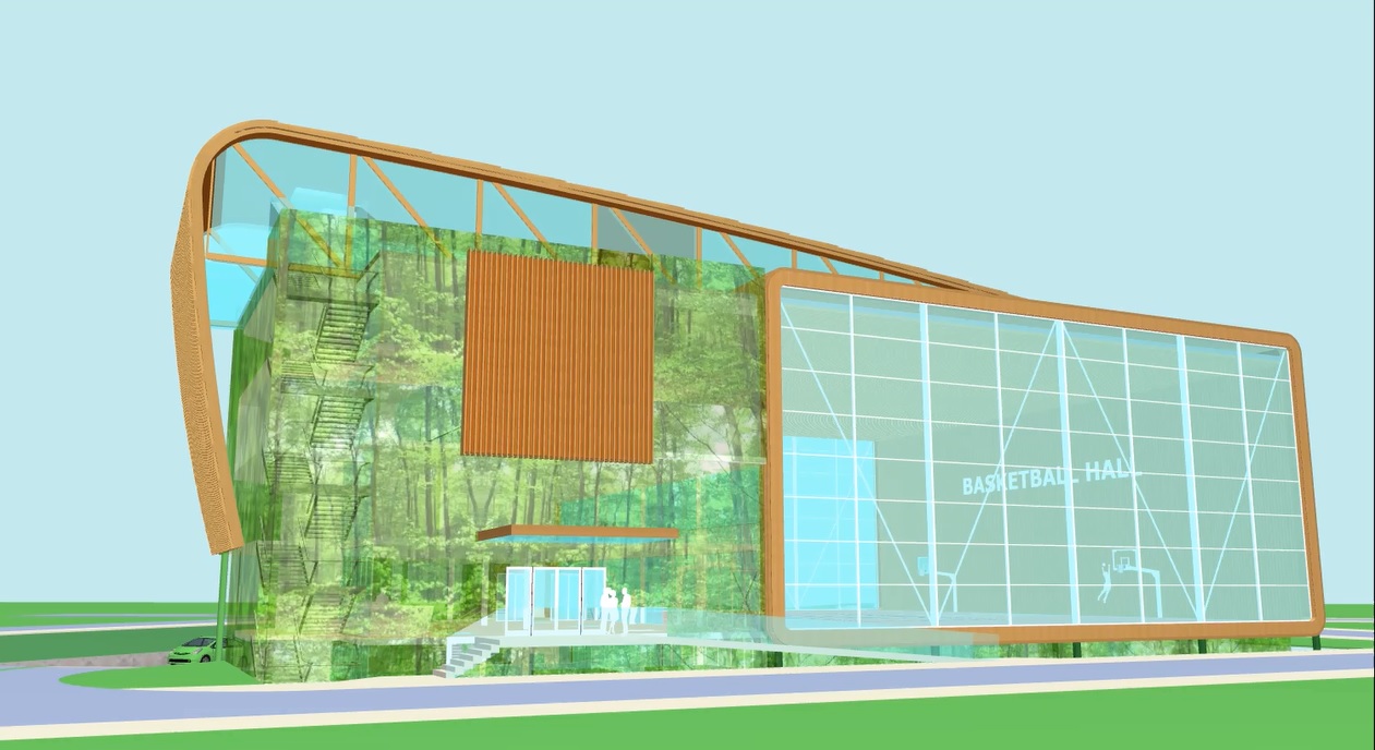 Комплексът в Слатина е замислен да бъде изпълнен в максимална степен с естествени материали - дърво, стъкло, стомана, камък и др., в духа на зелената архитектура и дизайн, обясни арх. Бойко Кадинов при представянето на проекта за залата и уточни, че мотото на проекта е “Спорт вместо дрога”. Предвижда се основните публични пространства да бъдат богато озеленени. Залата ще има широко отварящи се прозорци, които през летните месеци ще дават директен достъп до игрищата навън и така ще се спести от традиционния проблем с климатизацията. Освен това ще има фотоволтаици на покрива.