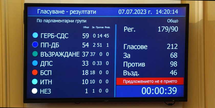 В подкрепа на допитването гласуваха 68 народни представители, 98 бяха „против“ и 46 се въздържаха.