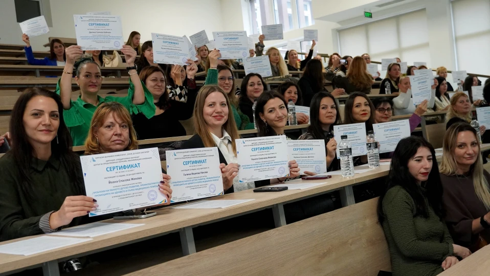 62 педагози от детски градини в Бургас преминаха успешно обучение в Бургаския държавен университет. Лекциите на тема „Проблеми на ранното детско развитие, профилактиката и промоцията на здравето и първа медицинска помощ“ имаха за цел да повишат и да поставят акцент върху интегрирания подход между образованието и здравните грижи.