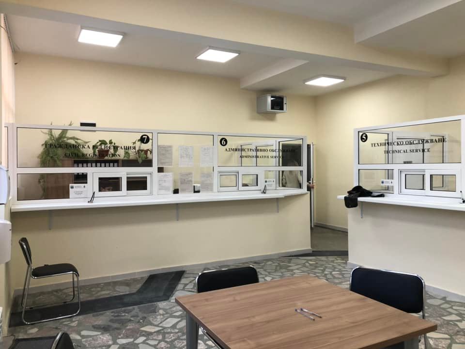 Разделени са на гражданска регистрация, техническо обслужване и по две за административно обслужване и за плащане на местни данъци. Обособена е и каса.