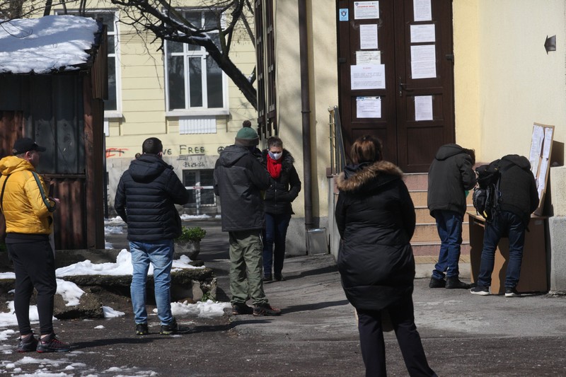 Десетки софиянци, освободени от работа заради кризата, се редиха да се регистрират като безработни в Бюрото по труда "Възраждане" на столичната ул. "Странджа" №64.