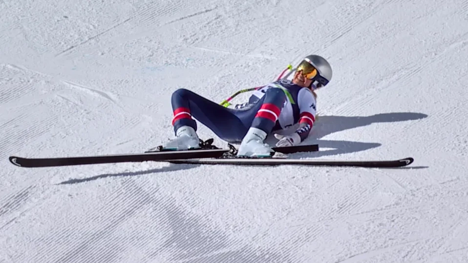 Вон се лекува в болница в Тревизо, след като беше транспортирана там с хеликоптер след падането си с висока скорост в Кортина д'Ампецо.