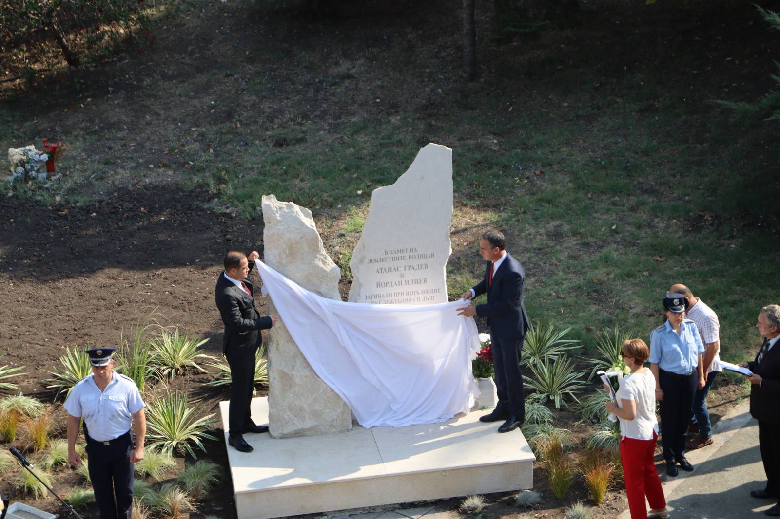 Кметът на Бургас Димитър Николов и министърът на вътрешните работи Калин Стоянов символично откриха паметника.
