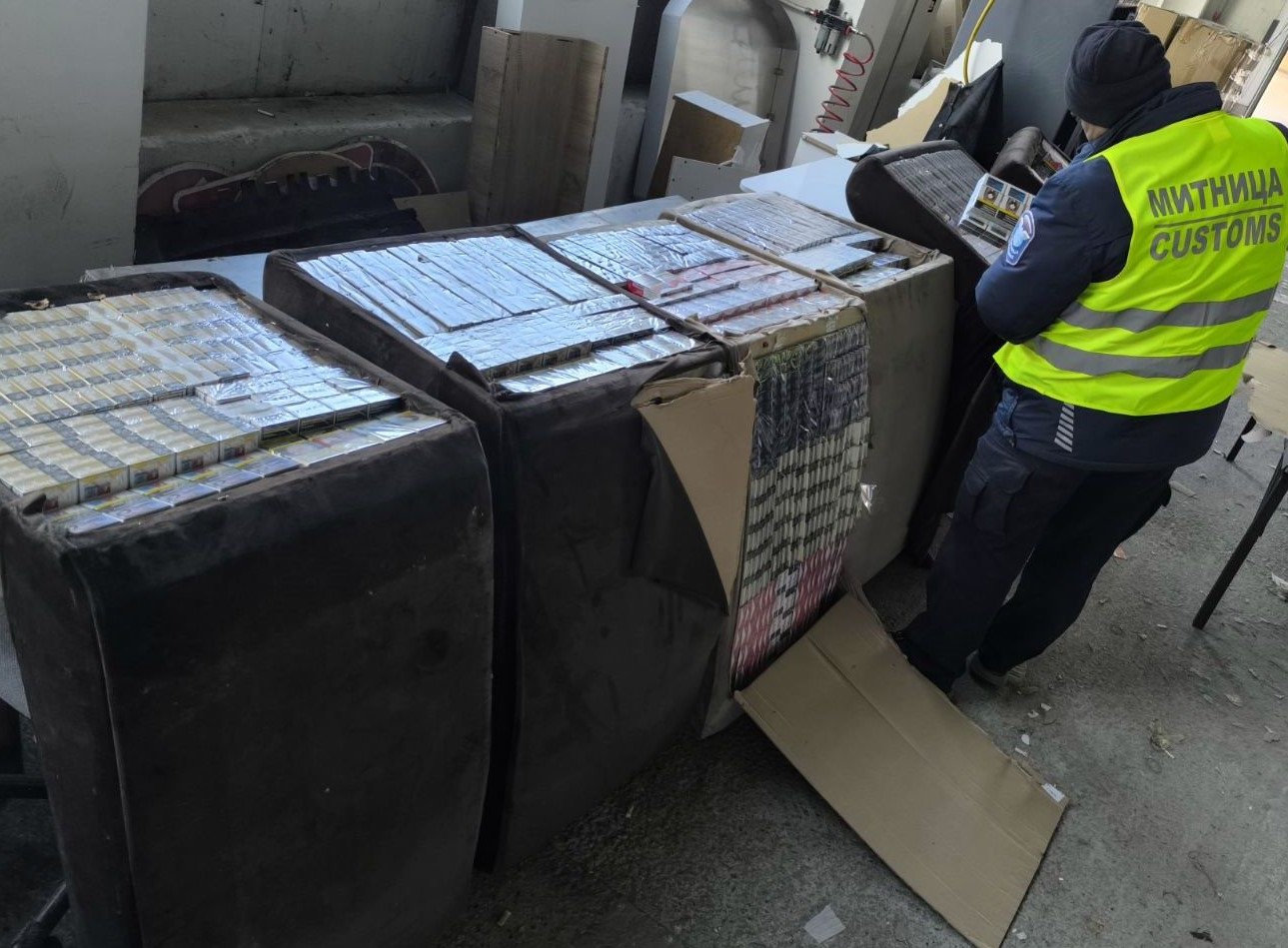 Близо 79 000 къса цигари с български акцизен бандерол, укрити в кресла, бяха установени от митническите служители при проверка на микробус в района на Дунав мост – Видин.