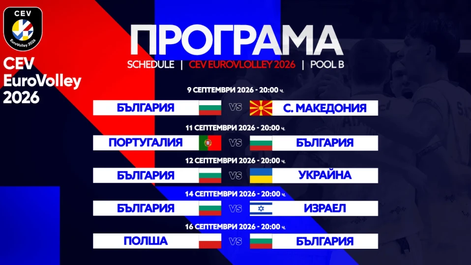 Програмата за мачовете от груповата фаза на българския национален отбор по волейбол за мъже по време на Евро 2026 вече е обявена официално. "Лъвовете" започват двубоите си в "Арена 8888" на 9 септември от 20:00 часа срещу Република Северна Македония.