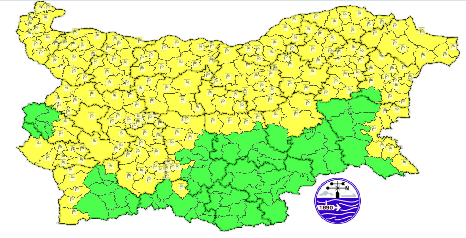 За понеделник (29.12) отново е обявен жълт код за силен и опасен вятър в по-голямата част на страната.