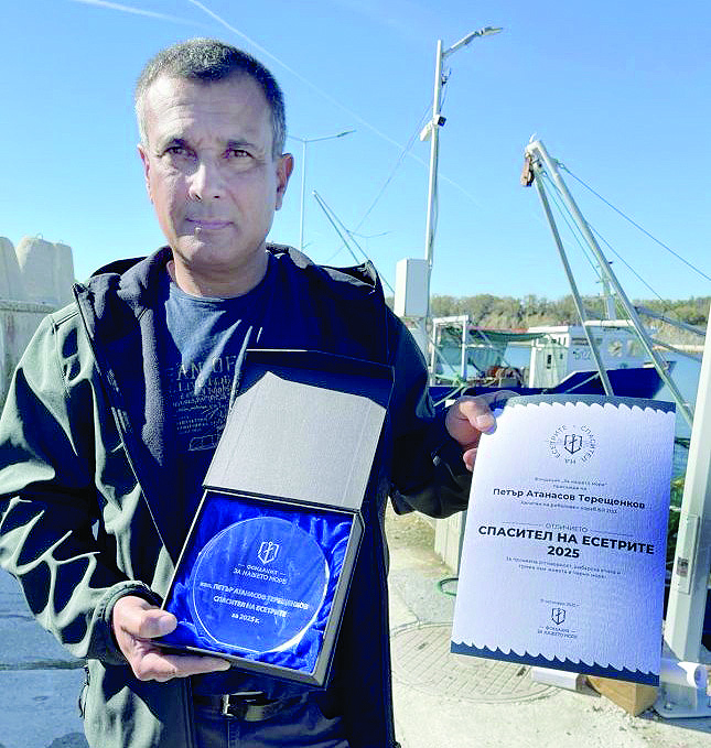 Капитан Петър Терещенков преди дни бе удостоен със званието “Спасител на есетрите”, след като с екипажа си хвана и върна в морето 325-сантиметрова риба от застрашения вид.