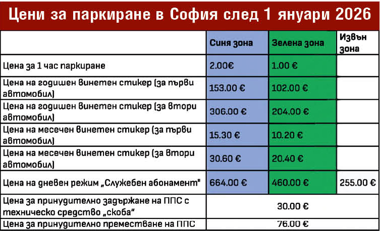 Двойно поскъпва от Нова година платеното паркиране в София. Това предвиждат два варианта на реформата в паркирането - първият е предложен от столичния кмет Васил Терзиев и коалицията ППДБ, а вторият е на “Спаси София”.