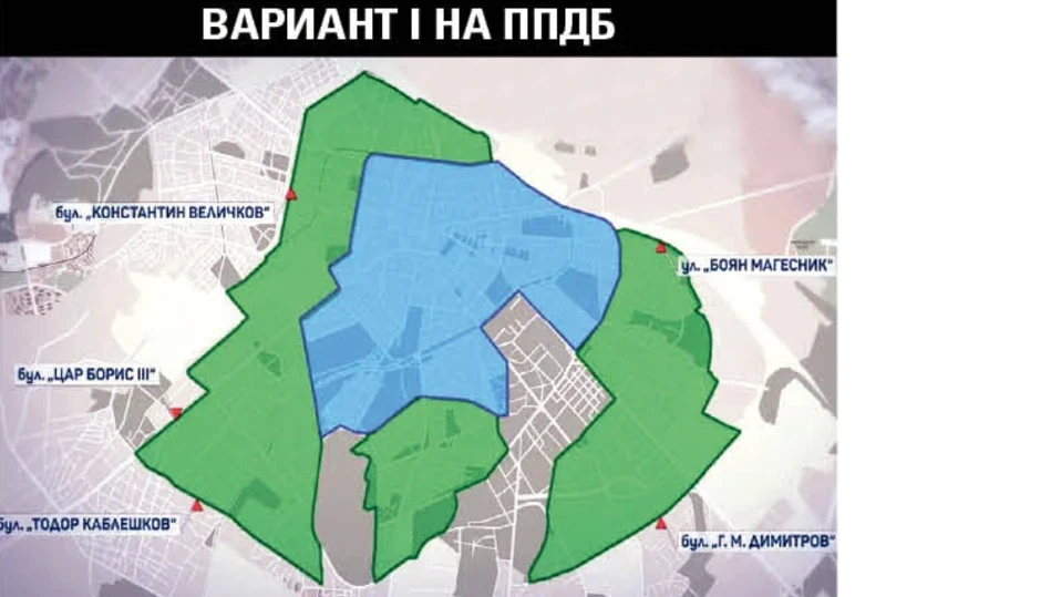 И в двата варианта на реформа се предлага разширение на зоните за платено паркиране. В предложението на кмета и ППДБ платено паркиране (зелена зона) обхваща “Белите брези”, “Борово”, “Гоце Делчев”, “Красно село”, “Лагера”, “Мотописта”, “Стрелбище”, “Банишора”, “Слатина”, “Гео Милев” и “Редута”, “Изгрев” и “Изток”, “Иван Вазов”.