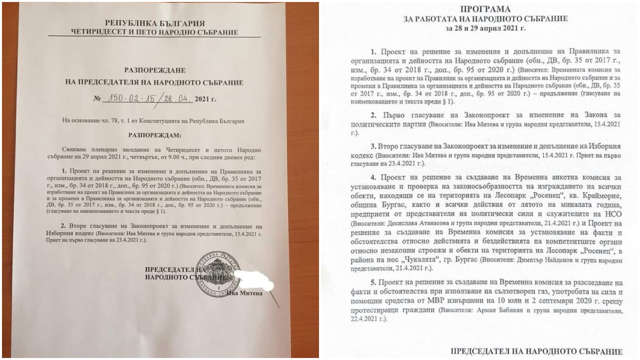 Първоначалният дневен ред за тази седмица бе отхвърлен безпрецедентно от депутатите и се наложи председателят на парламента Ива Митева да свика извънредно заседание със съкратена програма за утре.