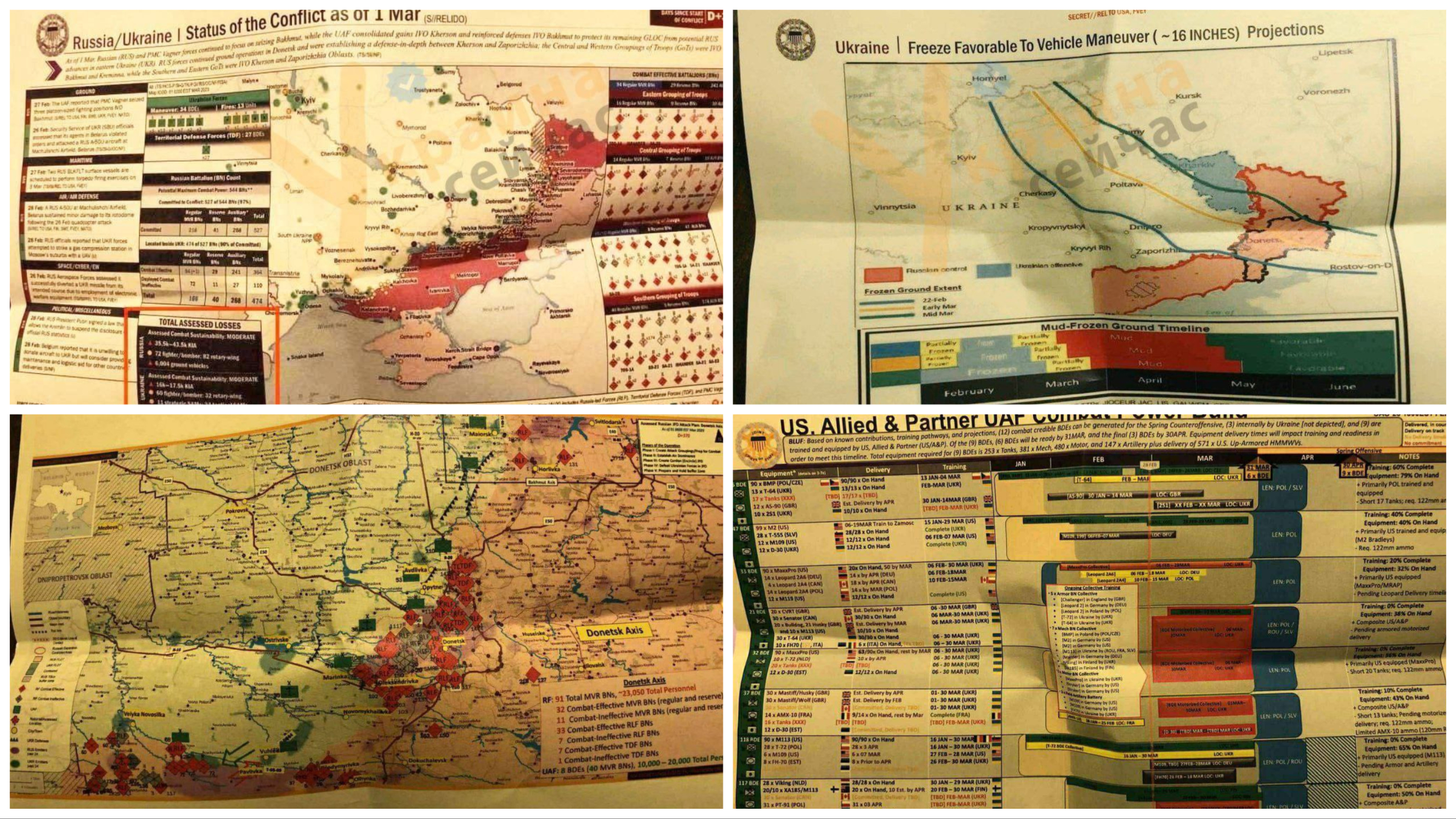 Според изданието секретните досиета се отнасят до доставките на оръжия, числеността на войските и батальоните на Въоръжените сили на Украйна към началото на март.