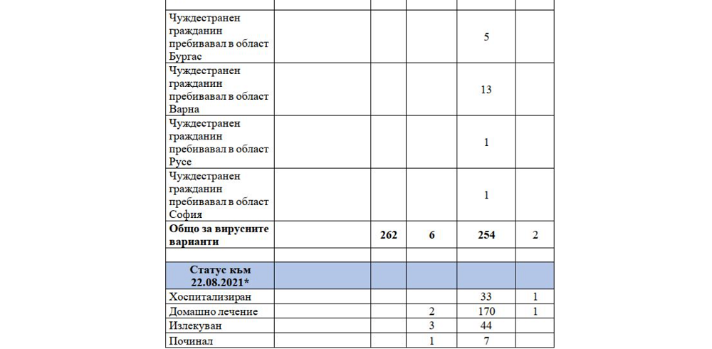 *Справката за състоянието на пациентите е към 22.08.2021 г. Провежда се допълнително епидемиологично проучване.