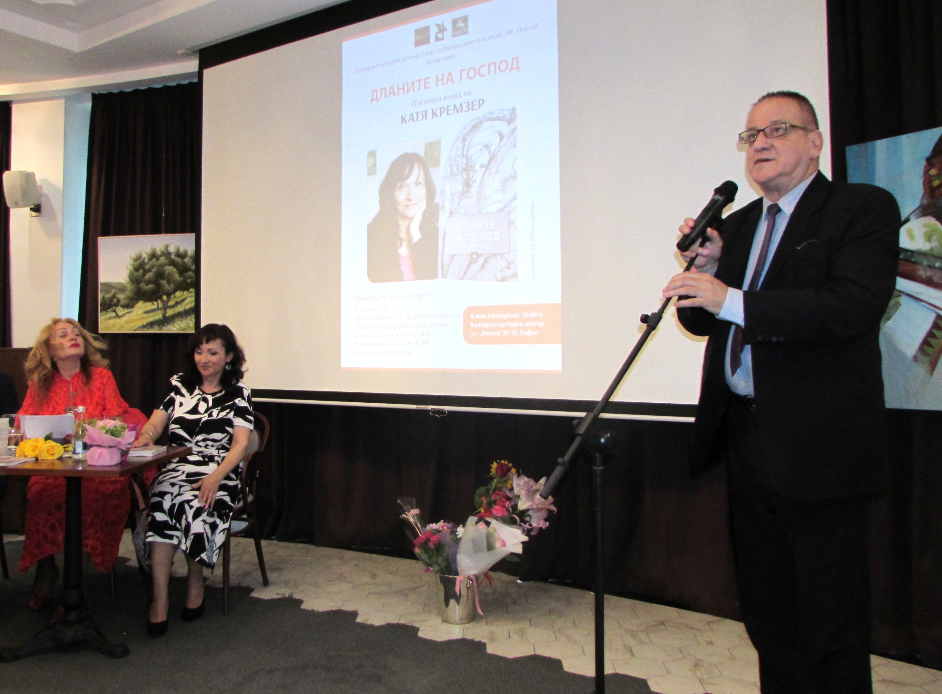 Книгата беше излязла от печат същия ден, а първия екземпляр с автограф получи Боян Ангелов, който приветства поетесата с думите: „СБП има немалко членове, които живеят извън границите на България, но те са в духовните ни граници. Катя е от тези радетели на българското! Книгата ни подсказва, че Господ е невидим, но ние виждаме винаги неговите длани, които са прострени към нас. Пожелавам на Катя слънчеви небеса в дланите на Господ!“. Свои впечатления от поезията на Кремзер и от нейната културна дейност във Виена споделиха също Рада Добриянова и Тео Буковски.