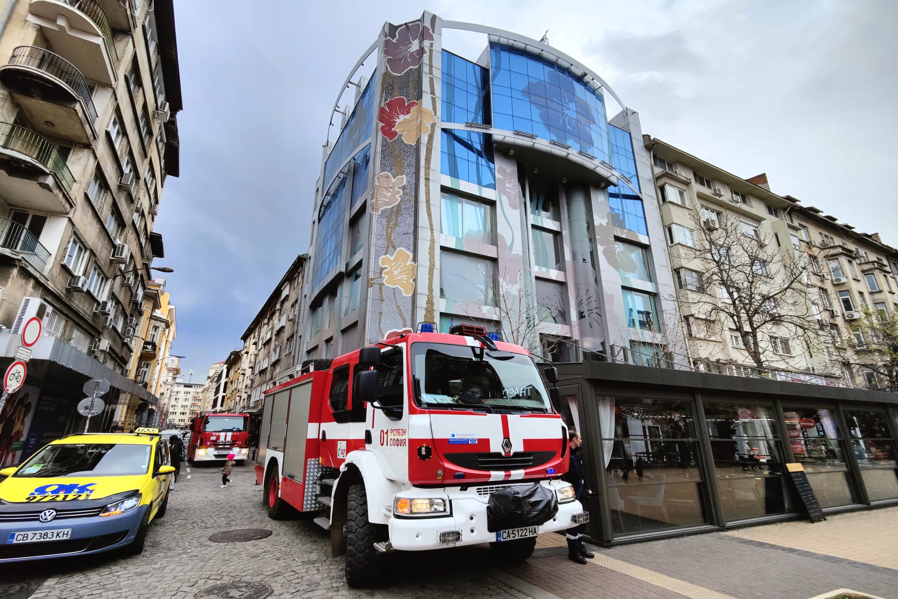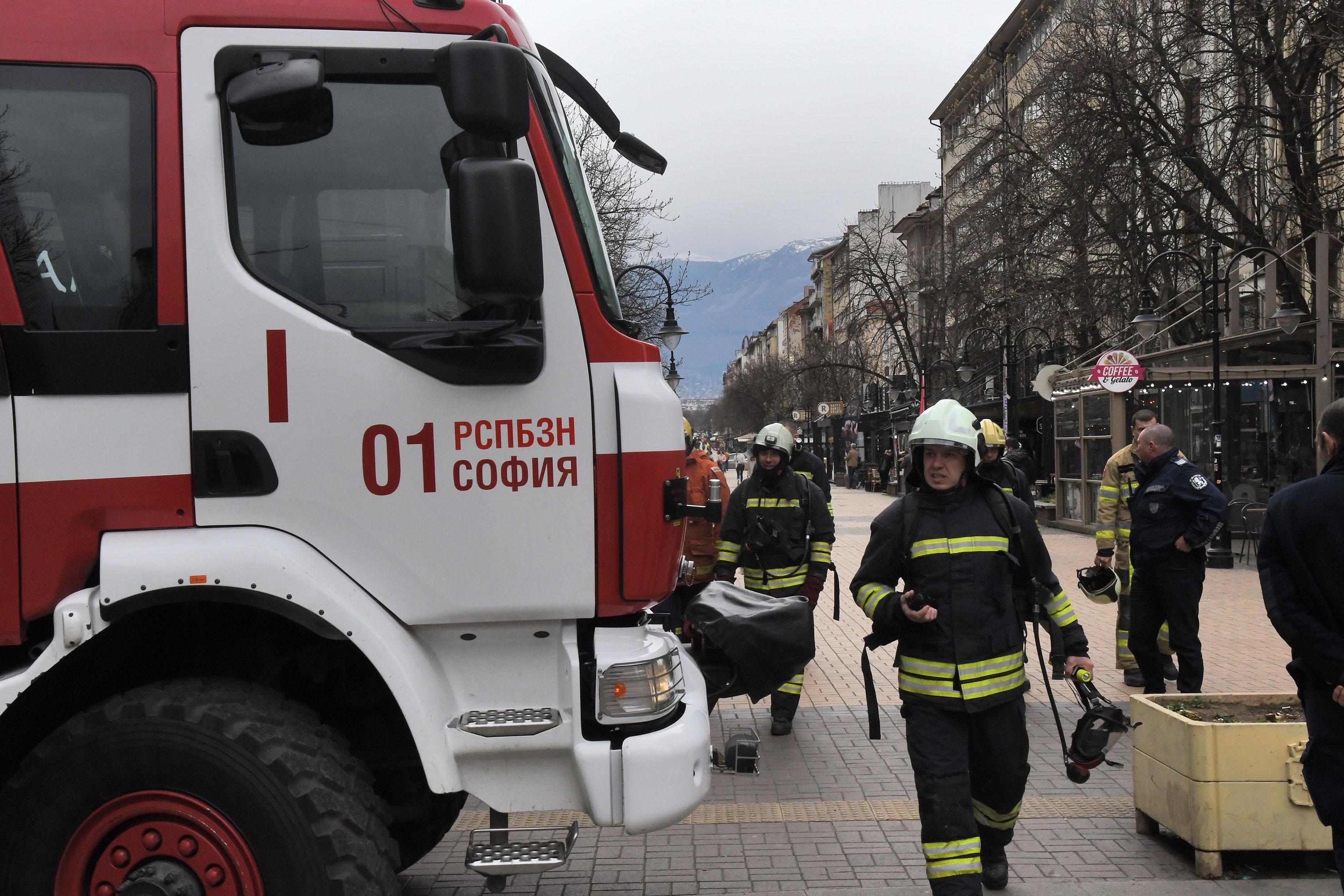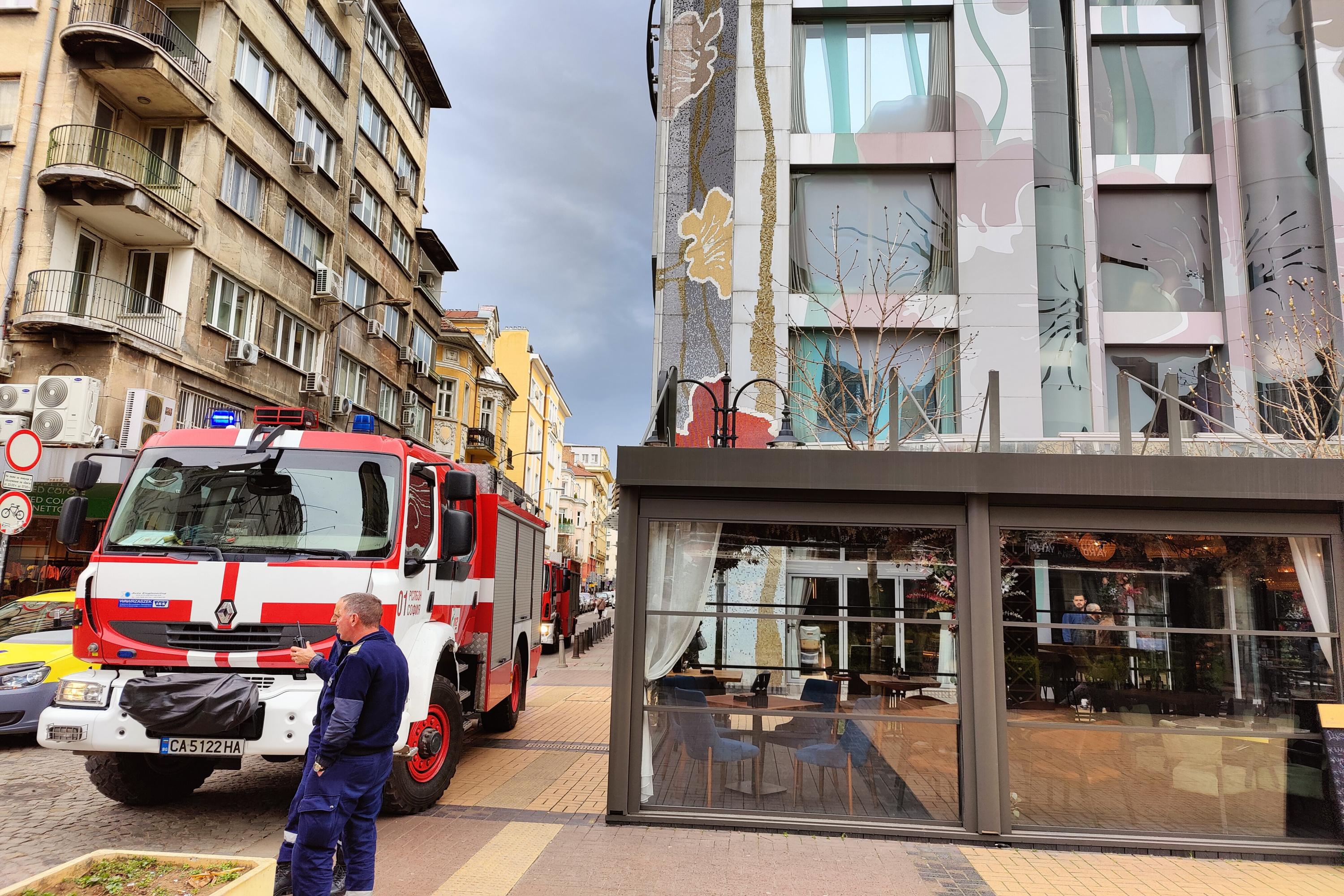 Сигнал за пожар на ъгъла между бул. "Витоша" и ул. "Денкооглу" в София.
