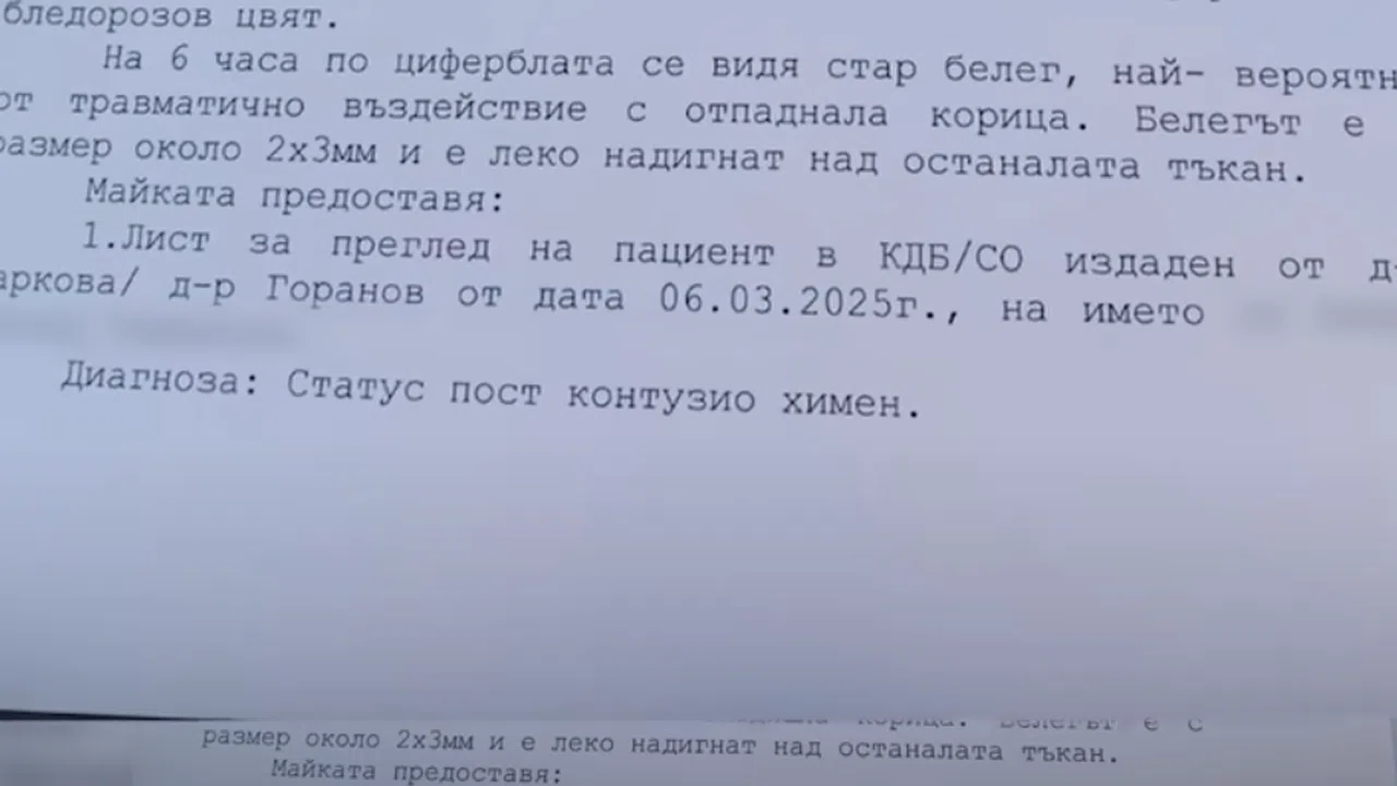 След като забелязват рана в интимната област, родителите водят детето в гинекологията на Съдебна медицина при УМБАЛ-Бургас. Заключението на медиците е, че детето има наранена част на химена.