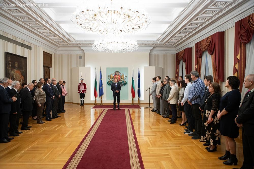 Държавният глава връчи грамоти в категорията „Ученици и техните преподаватели“ на Дарий Спасов – ученик от 12 клас в Технологично училище "Електронни системи" – София с проект в областта на оптимизацията на квантов алгоритми; Марио Петков, ученик от 12 клас в Професионалната гимназия по електроника и химични технологии „Проф. Асен Златаров“ – Плевен, с проект в областта на здравните услуги; Симона Христова, спечелила два златни медала от Европейската олимпиада по информатика за момичета.
