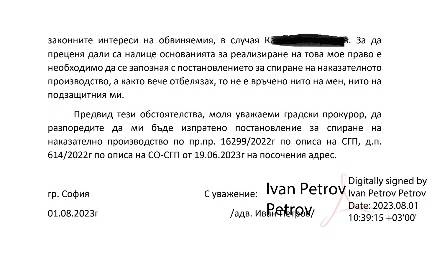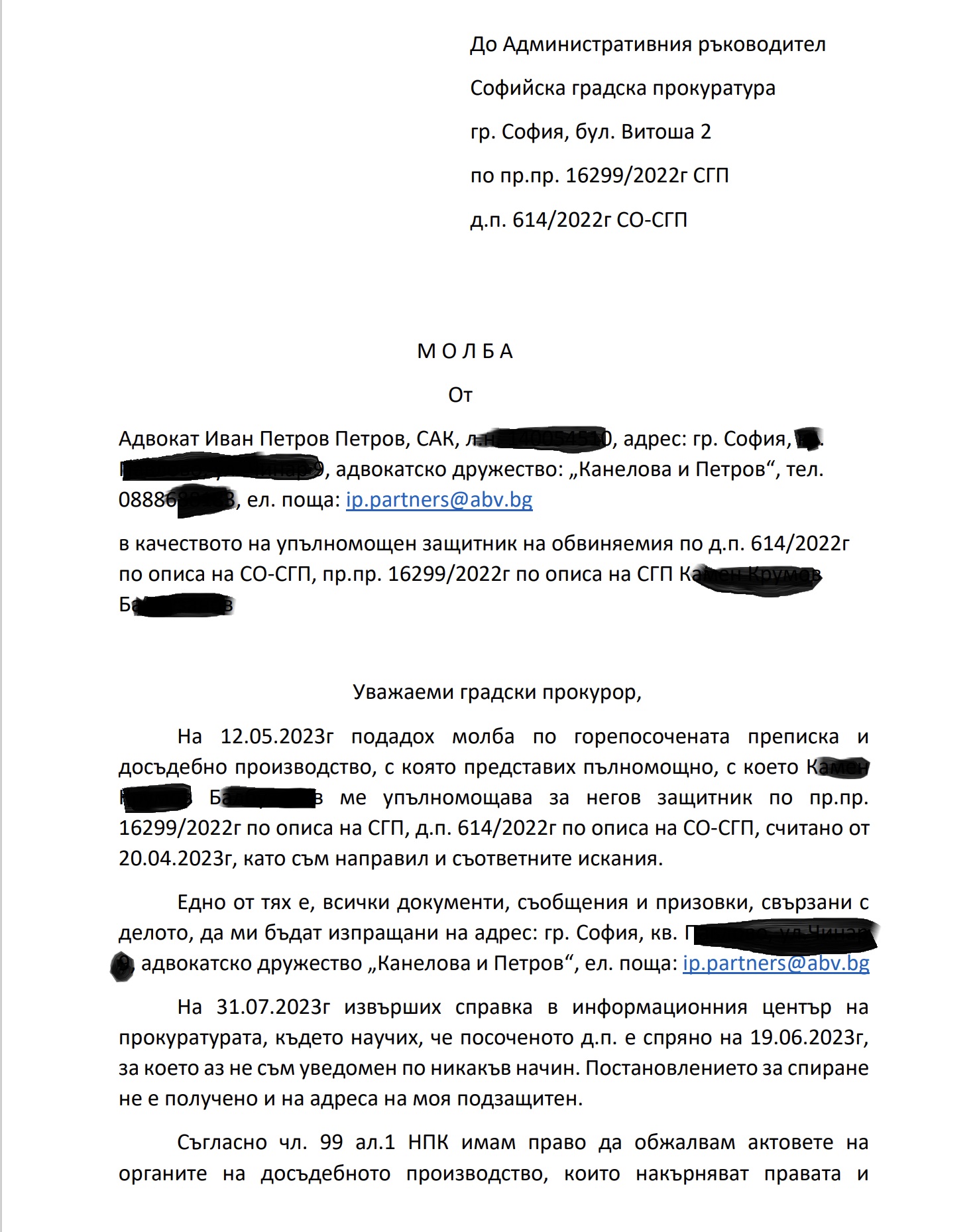 Прокурорска преписка 16299/2022 по досъдебно производство 614/2022 на Софийската градска прокуратура срещу Васил Божков и други е прекратена на 19 юни 2023 г. Това съобщи "Афера", публикувайки молба на адвокат Иван Петров до градския прокурор, който защитава един от обвиняемите, да му бъде изпратено постановление за спиране на наказателното производство.