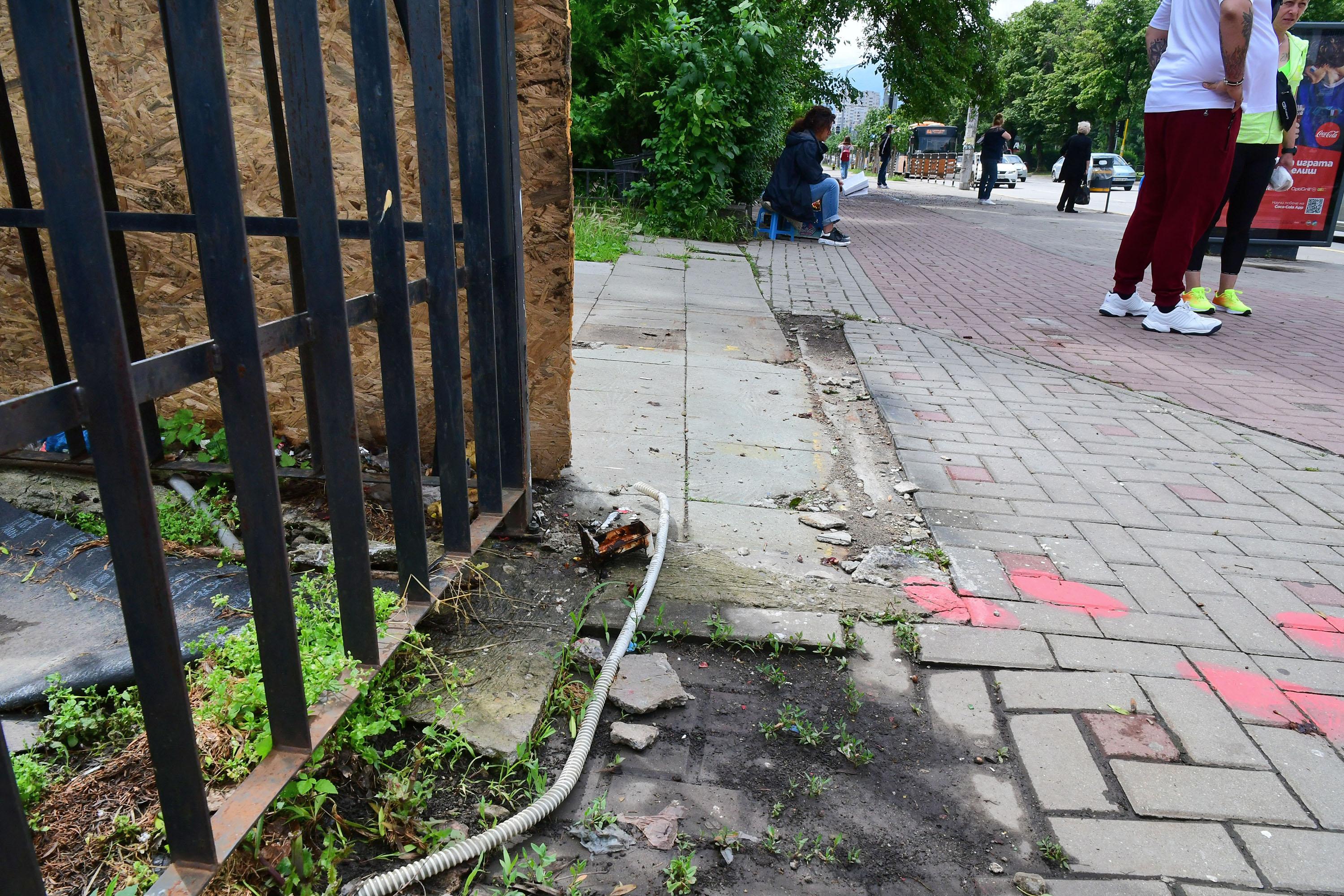 Демонтираха всичките павилиони пред болница "Свети Иван Рилски", където през февруари токов удар уби 16-годишно момче, стъпило на необезопасена шахта.
