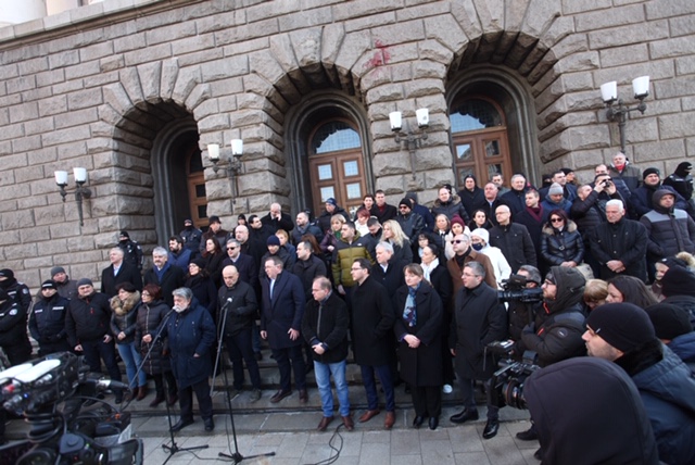 Протестиращите блокираха движението пред Министерски съвет. Чуват се възгласи „Оставка“ и „червени боклуци“.