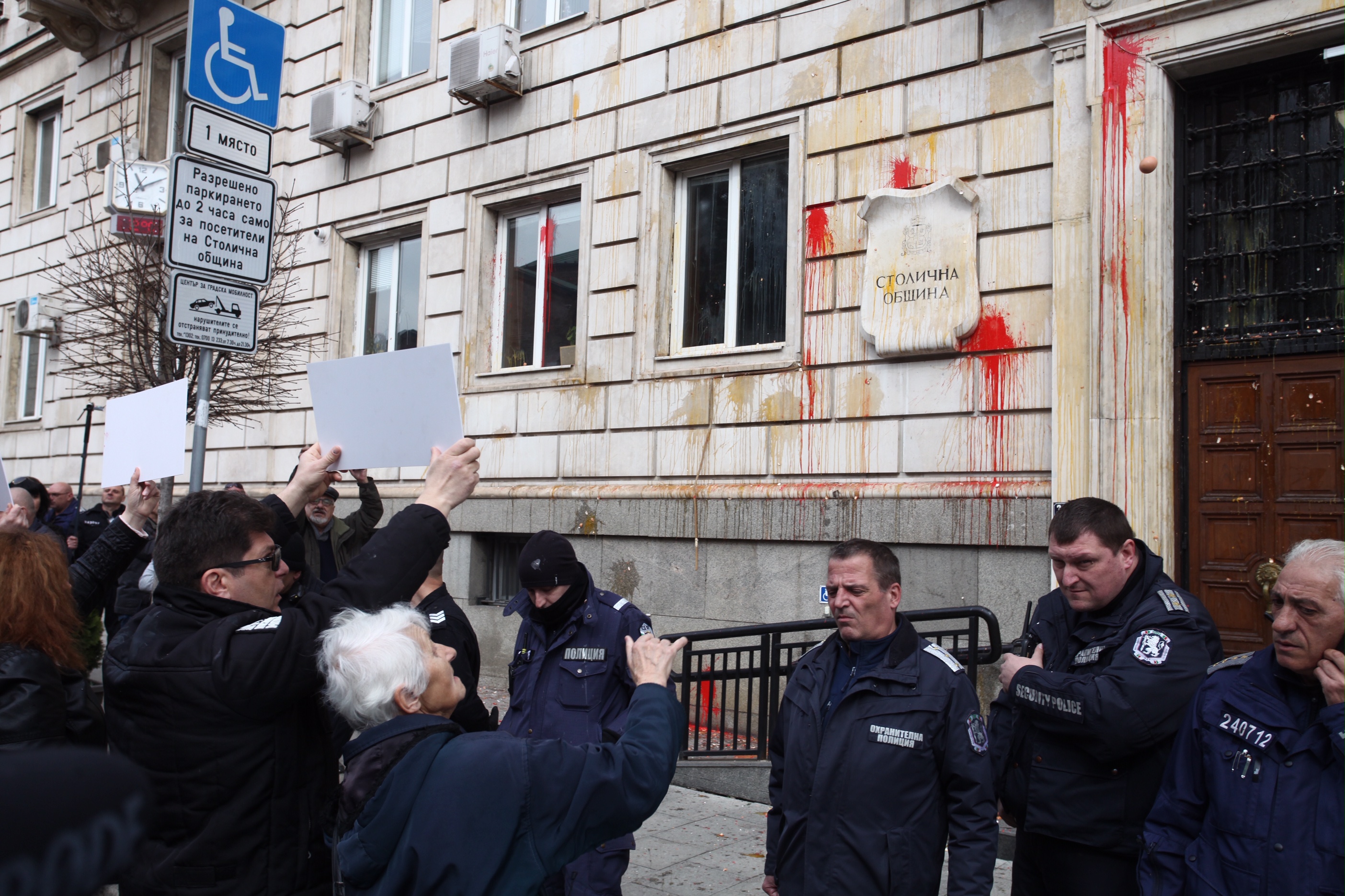 Протест пред Столична община срещу демонтирането на Паметника на Съветската армия.