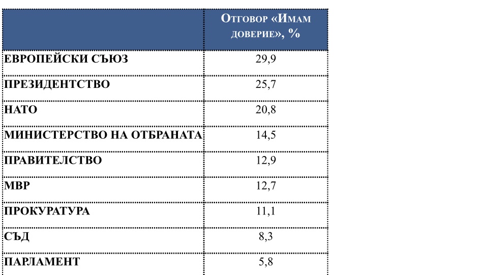Европейският съюз (29,9%) и Президентството (25,7%) се открояват като опорни точки за общественото мнение, но вече