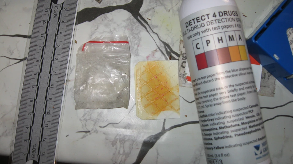 Установени и иззети са прекурсори и 10 пликчета, съдържащи кристалообразни вещества и тревиста маса, с общо тегло около 35 грама, реагиращи на амфетамин, метаамфетамин и синтетичен канабиноид. Има данни, че дрогата е била предназначена за пласиране на клиенти.